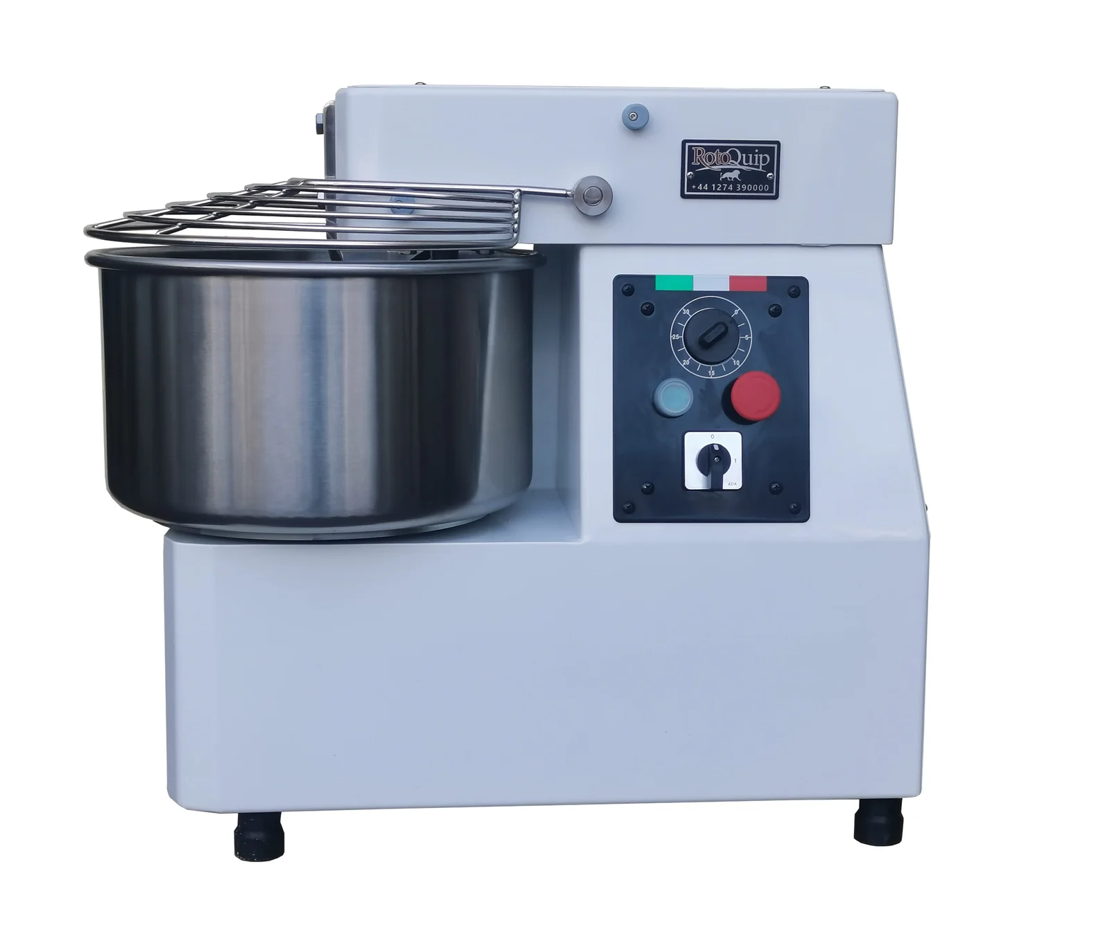Rotoquip’s professional Italian dough mixer / kneader is built using high standard parts and materials. Heavy duty motor and gear box drives the mixer’s bowl as well as the spiral, increasing the speed and efficiency greatly. Equipped with stainless steel protective guard and timer, makes this hassle free and safe to operate. The stainless steel safety guard also serves as an electric cut-off switch. Mounted on 4 heavy duty castors, Rotoquip mixers are easy to manoeuvre and extremely easy to clean. Suitable for mixing flour in hotels, restaurants, pizzeria, public canteens and roti/nan shops