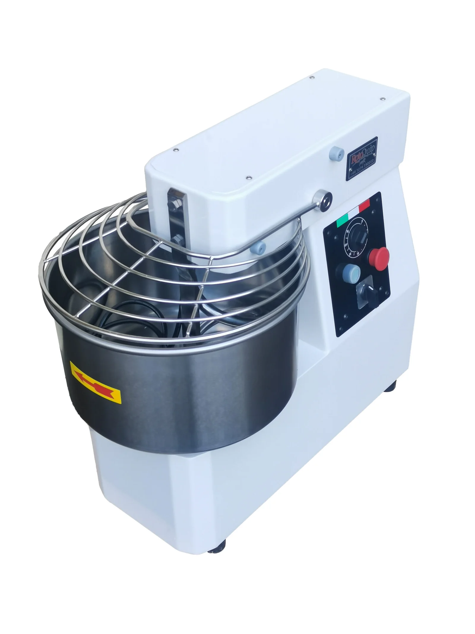 Rotoquip’s professional Italian dough mixer / kneader is built using high standard parts and materials. Heavy duty motor and gear box drives the mixer’s bowl as well as the spiral, increasing the speed and efficiency greatly. Equipped with stainless steel protective guard and timer, makes this hassle free and safe to operate. The stainless steel safety guard also serves as an electric cut-off switch. Mounted on 4 heavy duty castors, Rotoquip mixers are easy to manoeuvre and extremely easy to clean. Suitable for mixing flour in hotels, restaurants, pizzeria, public canteens and roti/nan shops