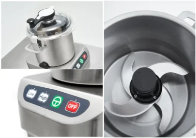 Rotoquip commercial bowl cutters / wet grinders are constructed using the highest quality of stainless steel. They feature strong cutlery knife, powerful and ventilated motor, safety micro-switch as standard, transparent lid and scraper accessory. These machines are designed in accordance with international safety and hygiene standards.